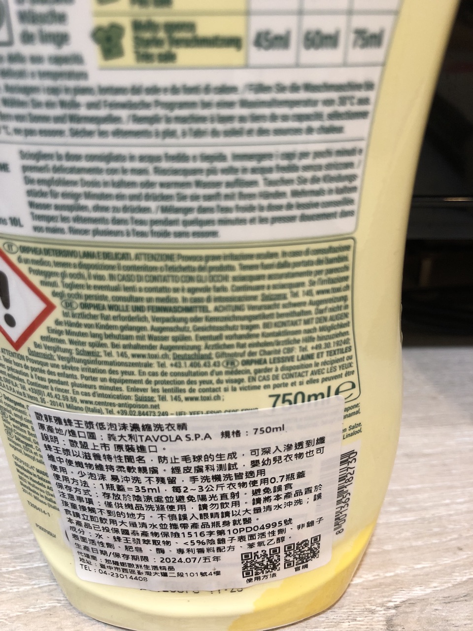 來自義大利的ORPHEA 歐菲雅 蜂王漿低泡沫濃縮洗衣精