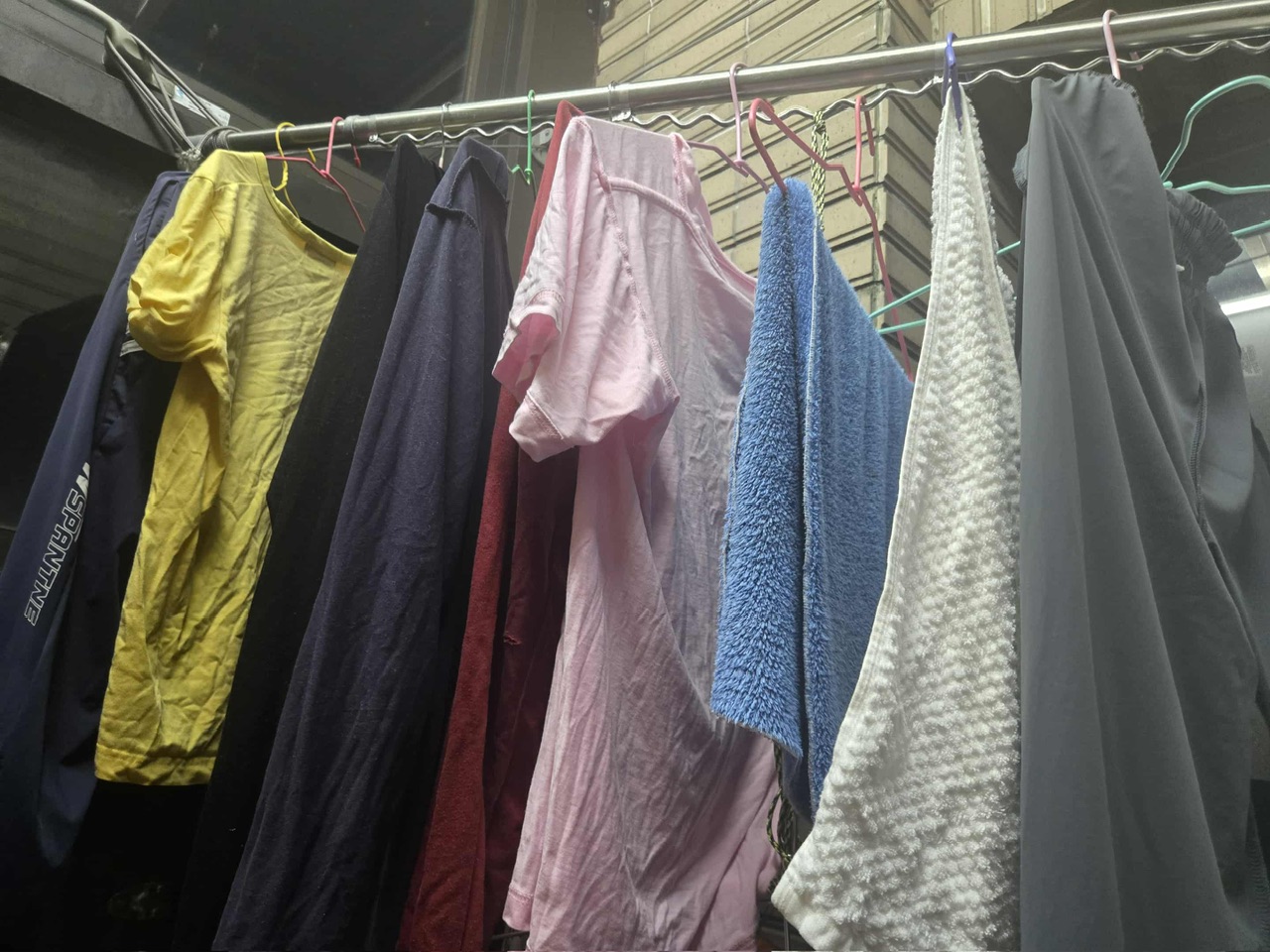 我分別洗了幾件T恤、黃色運動服和家人的工作衫。